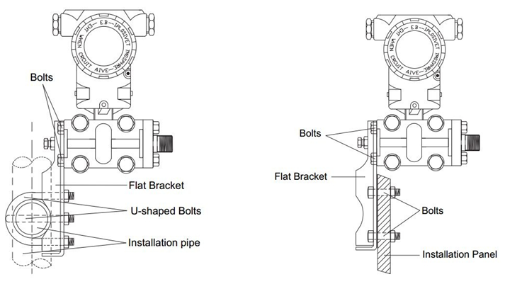 Датчики давления можно устанавливать непосредственно на технологических отводах или дистанционно, используя кронштейны и импульсные линии . Silver Automation Instruments предлагает несколько вариантов монтажа , включая: