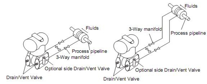 - Установите краны на боковой стороне линии и установите передатчик под кранами, чтобы импульсные линии были заполнены конденсатом.